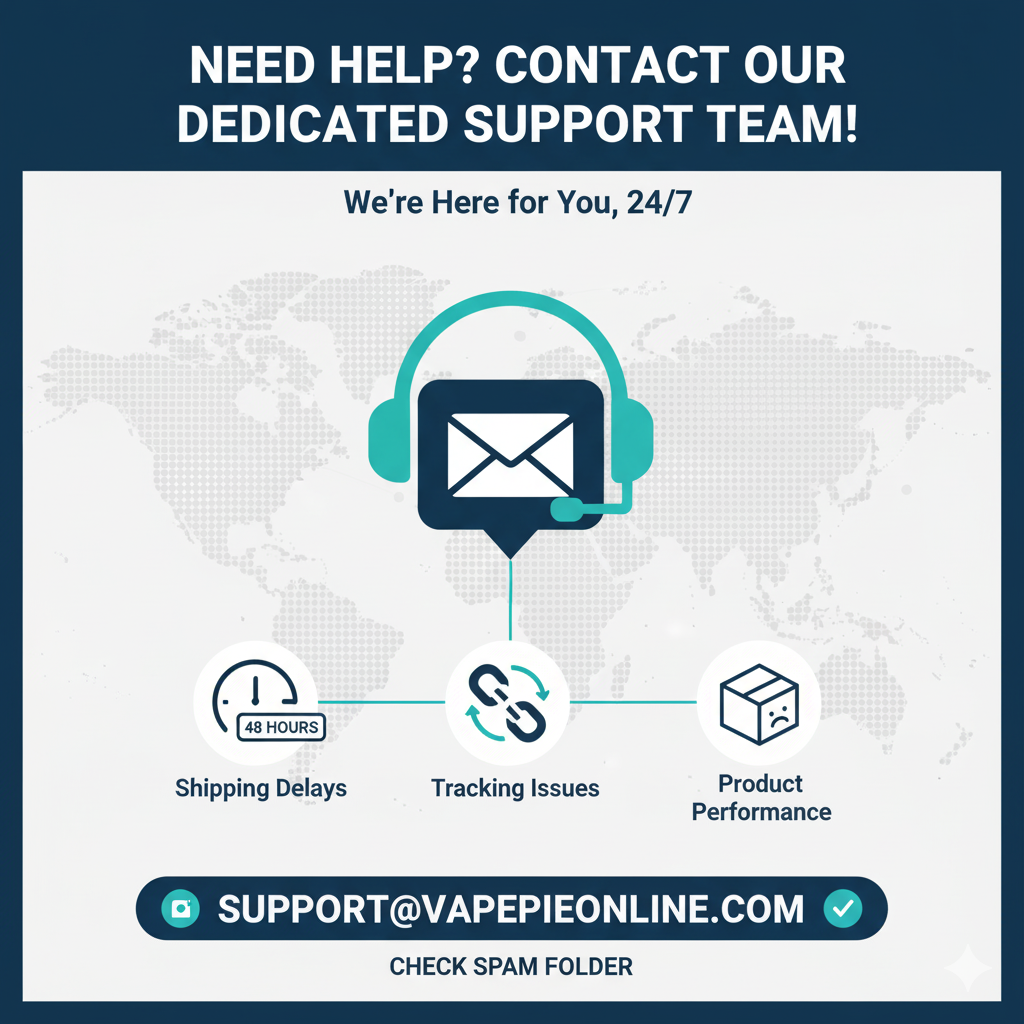We strive for perfection, but we know questions happen. If you have ANY concerns about your order, please do not hesitate to contact our dedicated Vapepie customer support team immediately at: