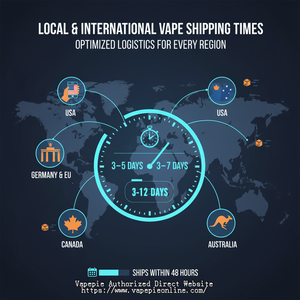 Vapepie delivers premium disposable vapes and rechargeable vape devices worldwide — focusing on fast, safe, and reliable shipping for our main regions: the United States, Europe, Canada, and Australia.